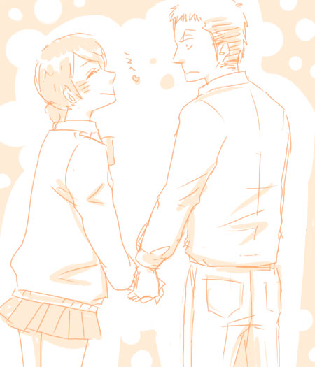 春乃がいきなり手を出して、金丸がなんだろうと思ったら実は手が繋ぎたかったんだよ漫画。