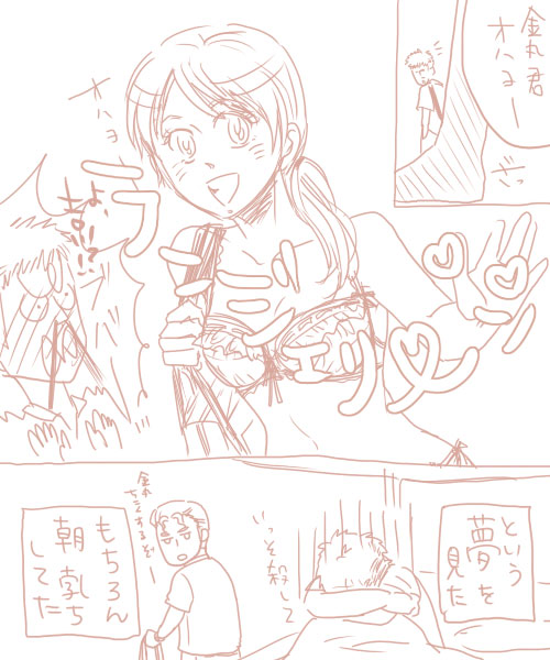 一ヶ月くらい前のToらぶるでリトが服が透けちゃうメガネをかけてしまい、わーん女の子の下着姿なんか見たくないのにーはずれない!というなんとも美味しい展開で、お約束のごとくメガネのサイドにあるボタンを押したら裸が見えるようになっちゃった!どうしよう!ってなってたので、ちょっと内容は違うけど金春妄想で補完させていただきました。思春期だもんね!好きな子の裸とか想像しちゃうよね!ランジェリーなのはせめてもの良心(私の)でも、ランジェリーは金丸が最近見た雑誌かAVの女の子がつけていたランジェリーでそんな自分に鬱って悶々とすればいいと思いましたよ。その日一日春乃と目があわせなければいいですよ。