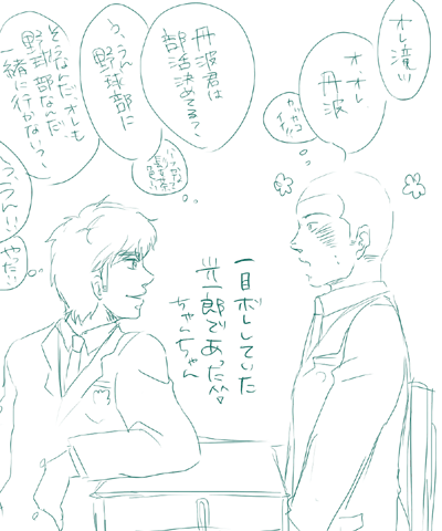滝川、丹波で名前の順並ぶからさ・・・!こんな出会いでも私はいいと思うんだ^^ちなみに回想丹波さんが左向きなのは私の力不足です・・・。