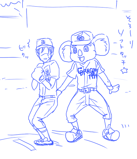 絵はかっこつけたもののかっこつけすぎた自分が恥ずかしくなったクリス先輩という題名のクリ沢。この二人はまだちゅーだってしたことないんだぜ。どんだけ!攻められると弱い沢村だが、相手が引くと強気になるのだ^^絶対、顔赤いクリス先輩珍しー可愛いーとか思ってるんだ。顔が違い過ぎるクリッテンパイが残念。