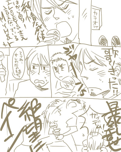 感想を書こうと意気込んでいたら、マガがどこにいったか分からなくなったでござる・・・泣。とりあえず、哲也氏の歌がルパンだということをお友達に教えてもらって大ハッスルしてました。ホント何あの子!超可愛いんですけど!降谷も可愛すぎである。降谷なんでも感動しすぎじゃない?超不憫!笑。北海道時代がどんだけ可哀想だったか想像すると涙です。頑張れ降谷!お前の後ろには頼りになる先輩方や、ノリがスタンバって(って入れたら素丹波って出てきた・・・モエル笑)るからね!ということぐらいしか覚えてません(完)真面目に絵ぐらい描けばよかったな・・・デジタルは楽で簡単に出来るけど質も落ちるんですよね。ちょちょいとやってしまう性格をどうにかせねば。