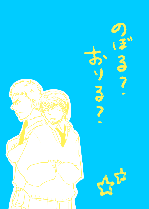 TOP絵を変えようと思って何故か三年生を描こうと思って、純さん、哲也を描いた時点で諦めてただの純哲仕様になった件。大勢は苦手である・・・。純さんの袖はオトメン仕様です。